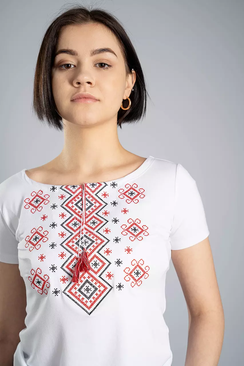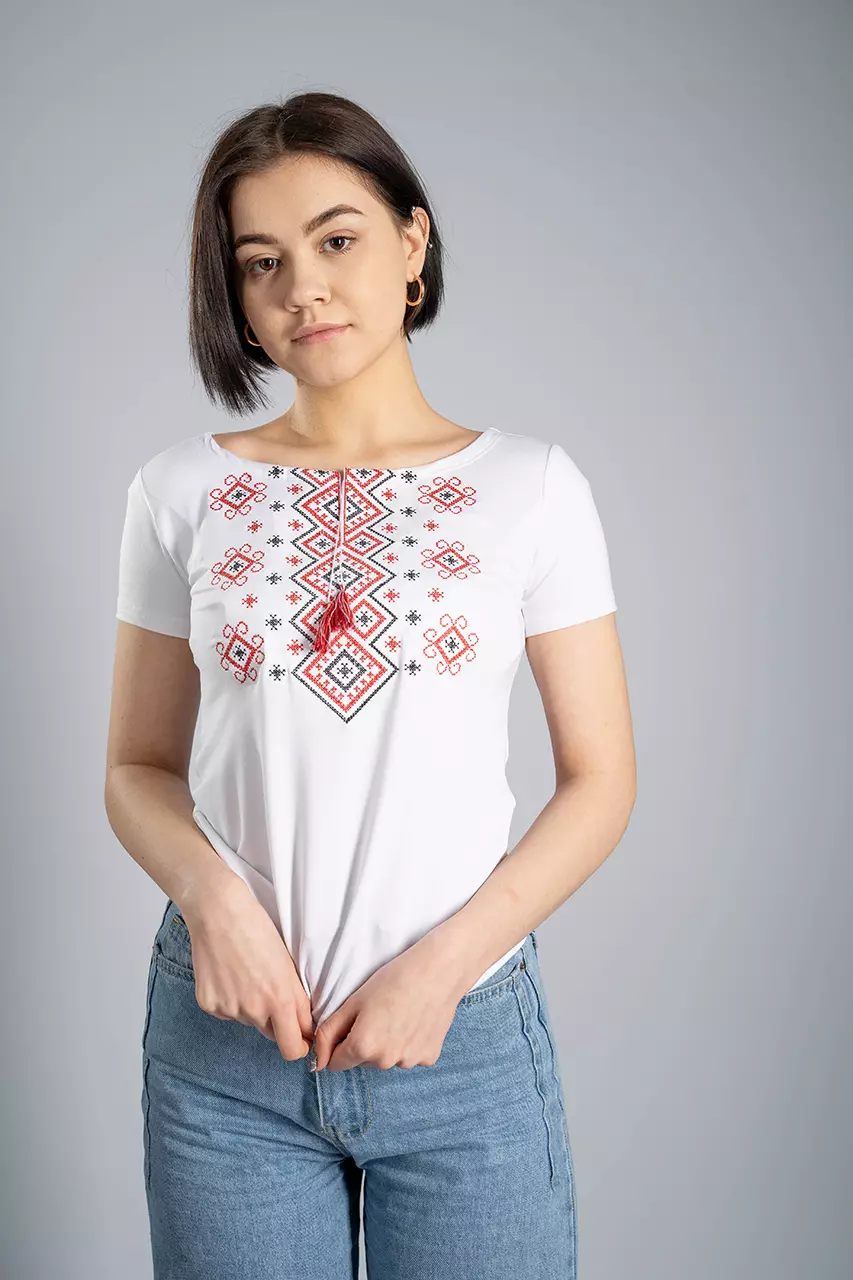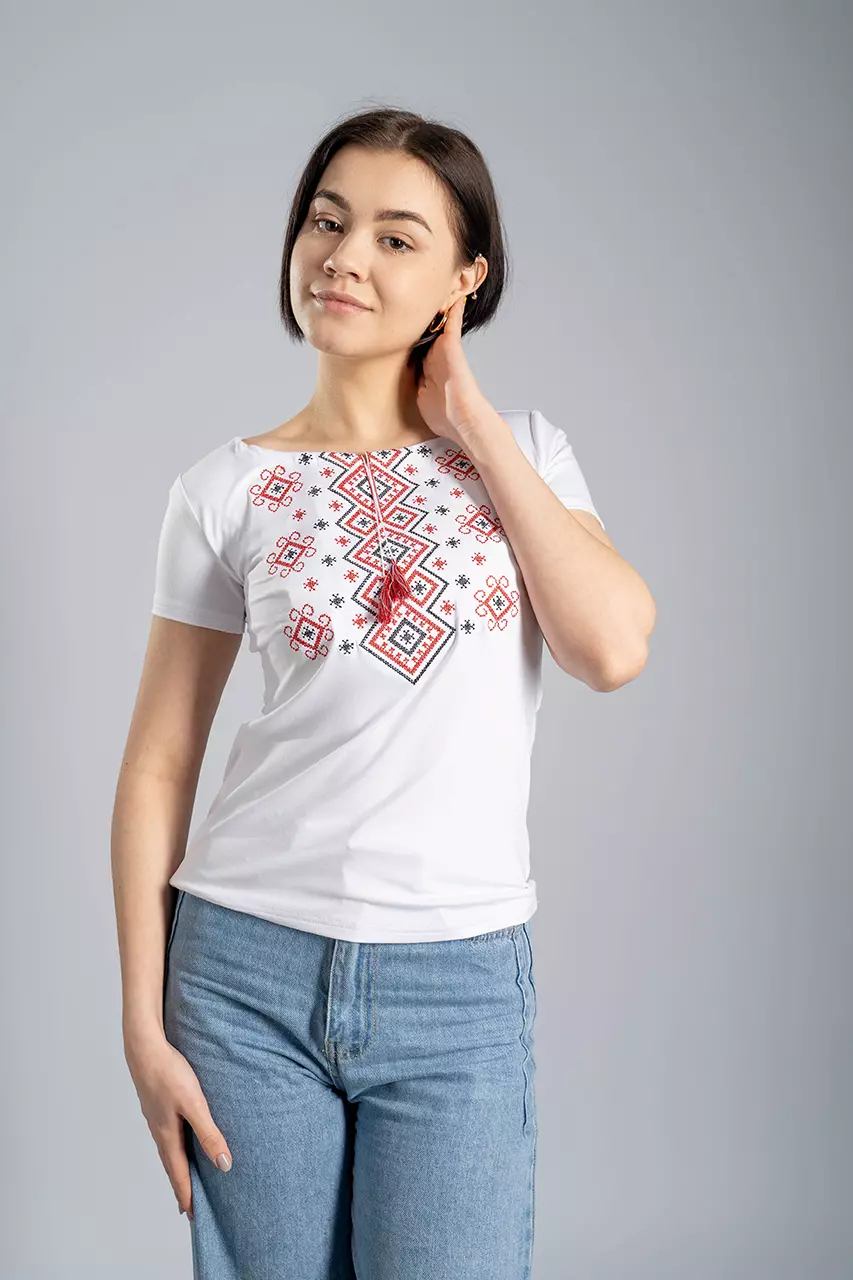 Ніжна та надзвичайно білосніжна вишита футболка для жінок - те, що треба на будь-яке свято та будень. Ви будете потішені високою якістю цієї речі, адже в основі цієї вишиванки дуже якісна тканина. До її складу входить віскоза та еластан, саме тому вона така ніжна та красиво лягає по контурах Вашої фігурки.