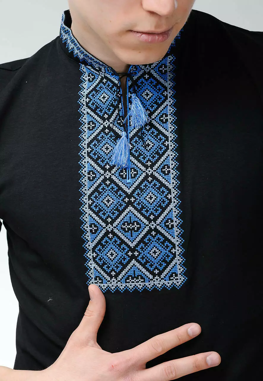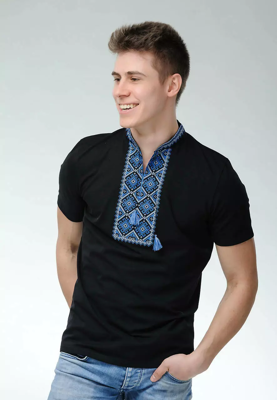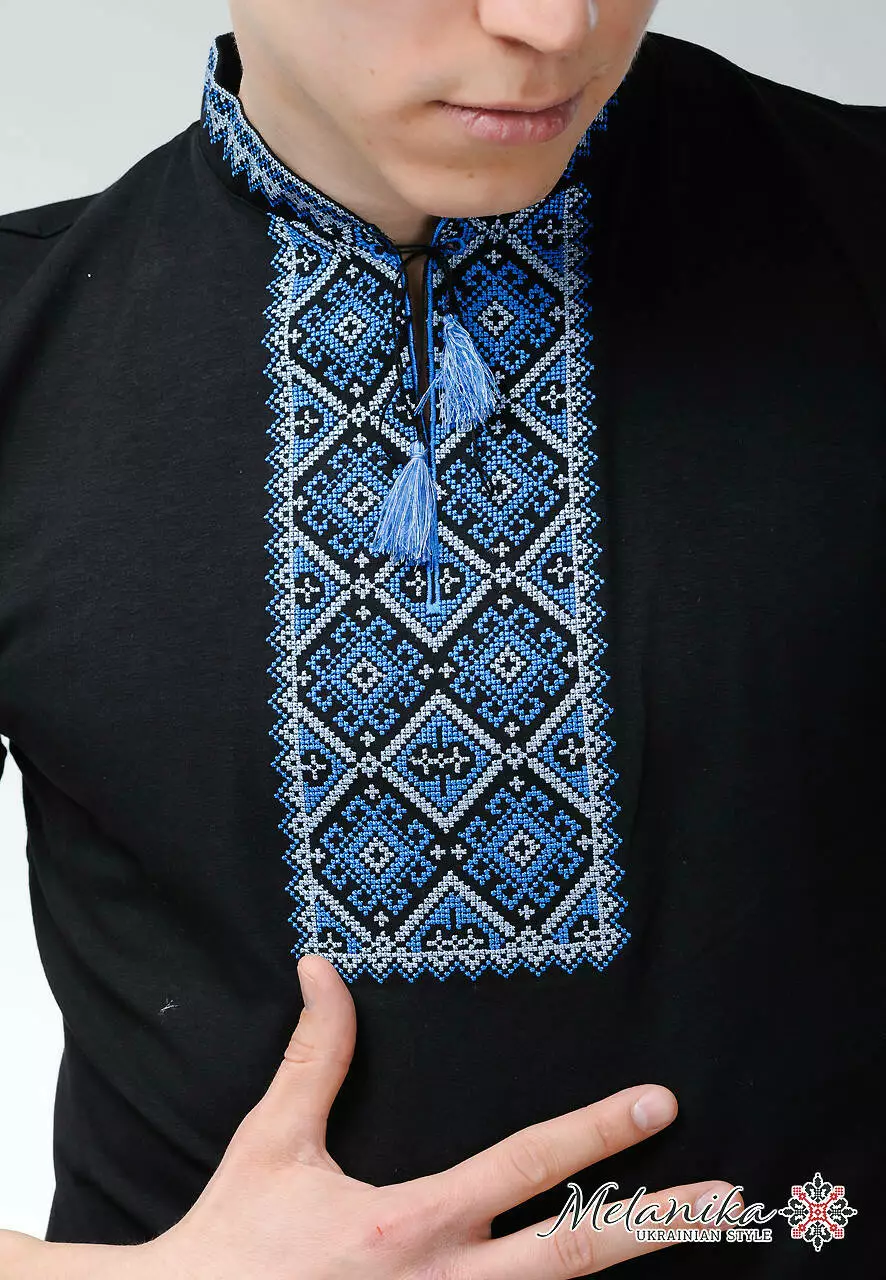 Український бренд вишиванок "Меланіка" створив цю модель з великою любов'ю до чоловічої статі. Тканина - 95% бавовна, якісна та приємна на дотик. Поєднання чорної основної тканини та яскравих відтінків синього знайшло чимало шанувальників серед клієнтів.
