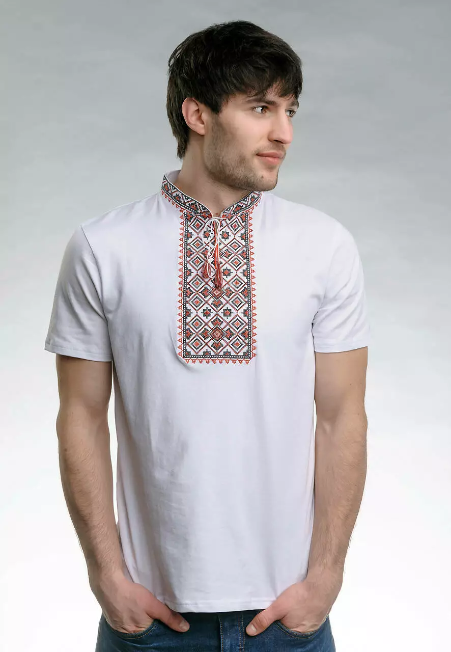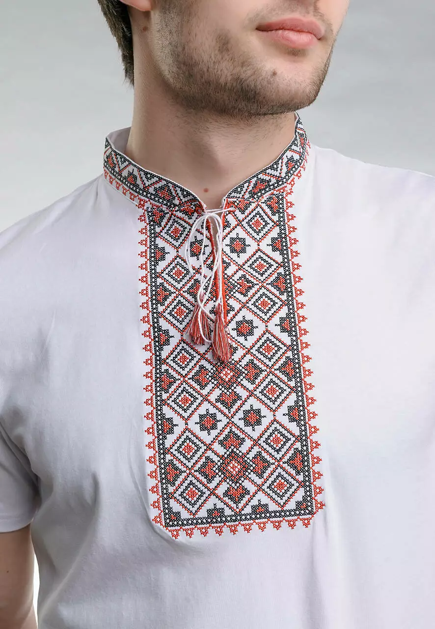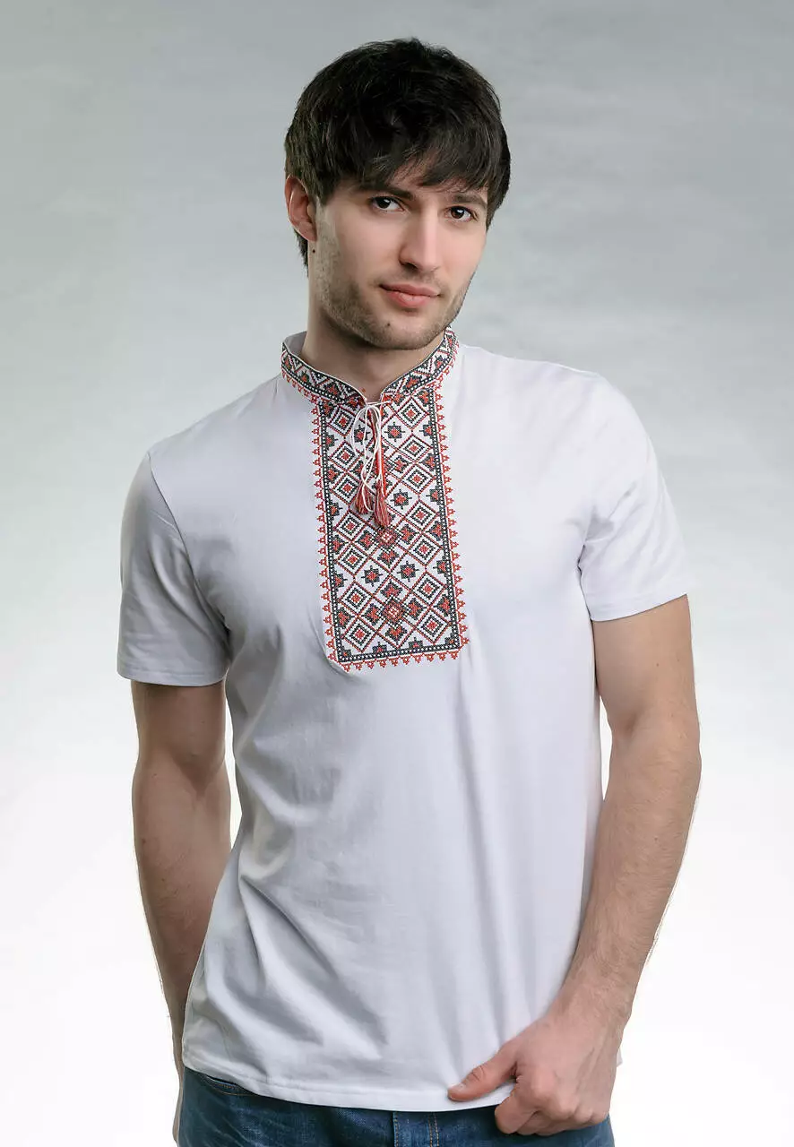 У цій моделі ми залишили кольори класичної вишиванки, але зробили її практичною та зручною для щоденного вбрання. Техніка машинної вишивки хрестиком. Натуральний матеріал виробу – високоякісна бавовна білого кольору. Така модель чудово пасуватиме до класичного костюма чи джинс.