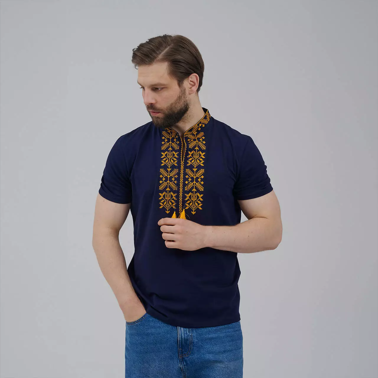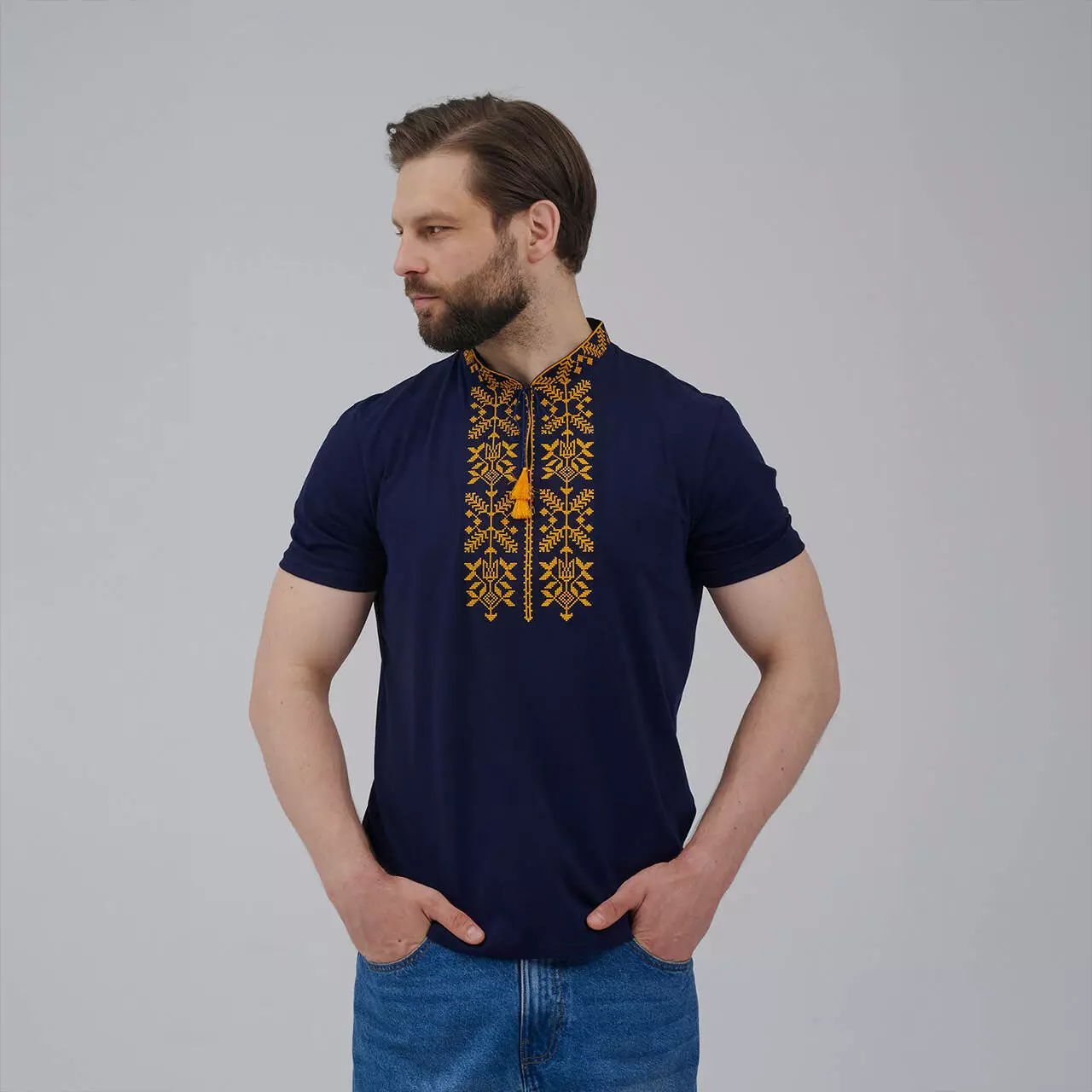 Чоловіча футболка з вишивкою Тризуб на синьому