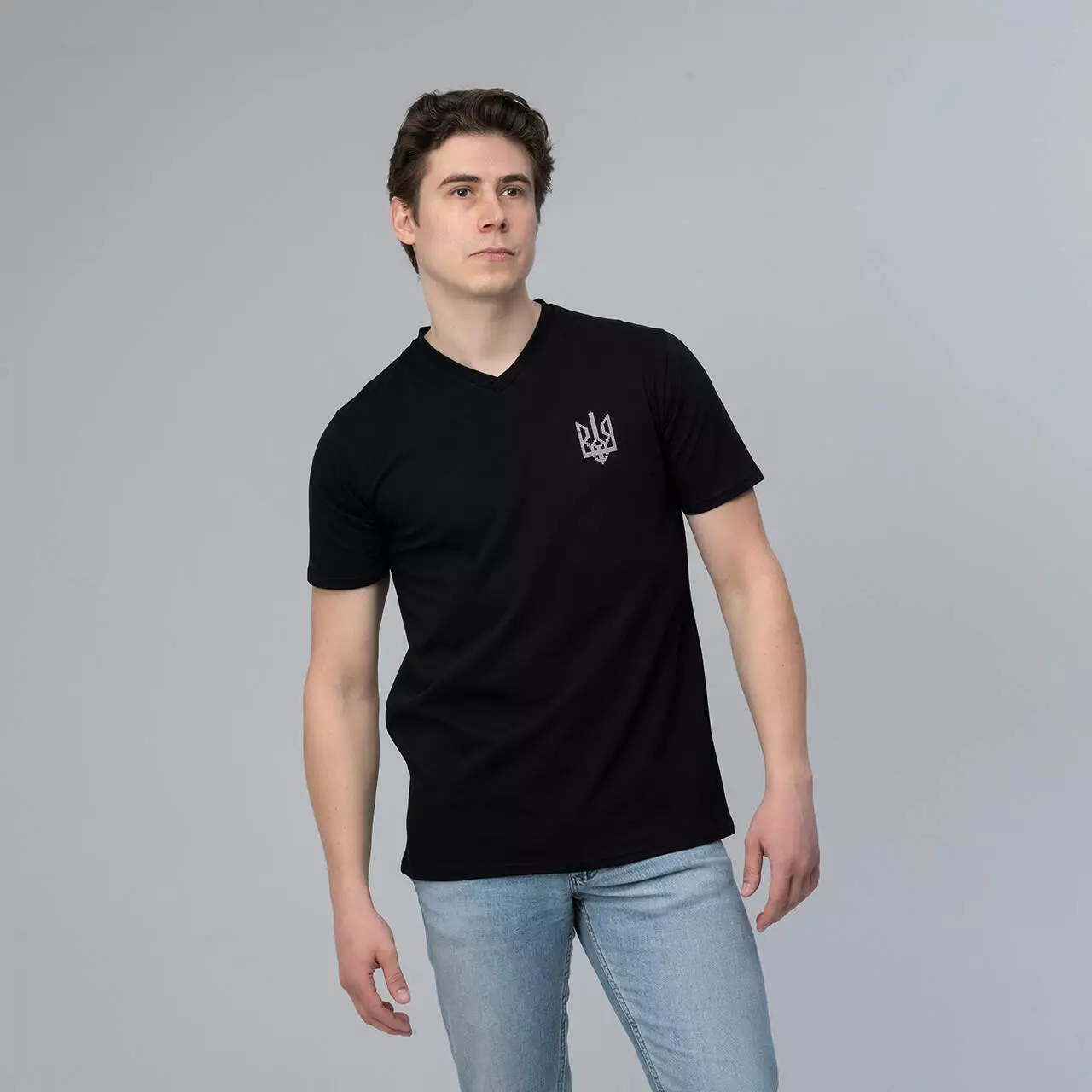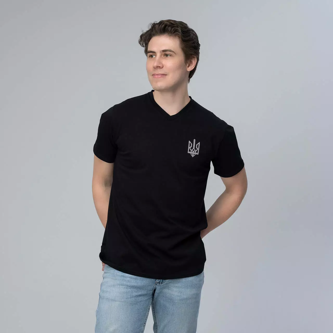Футболка чоловіча з V-вирізом "Тризуб" сіра вишивка