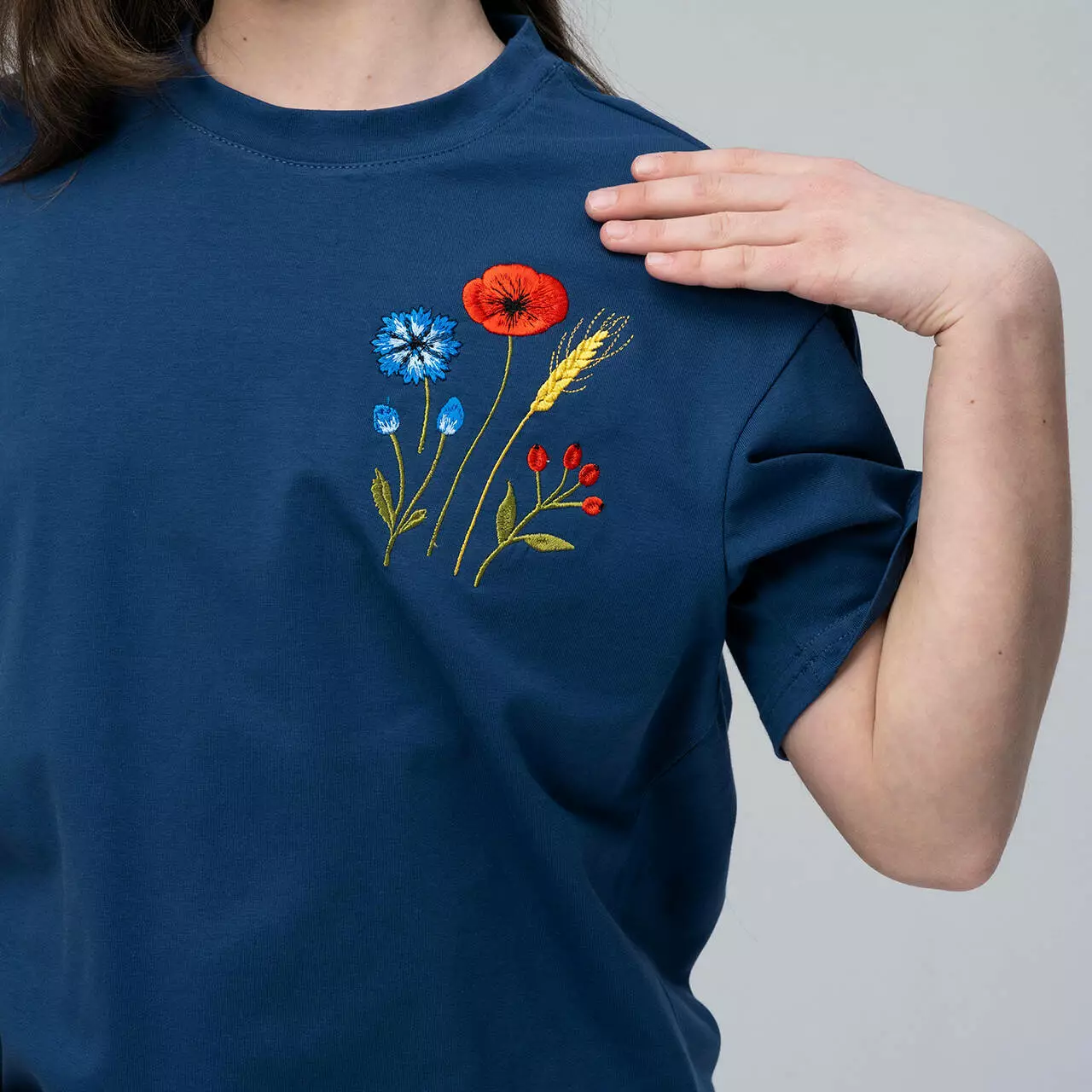 ???? Вишивка : ніжні квіти, що мов живі, додають футболці чарівності та легкості.