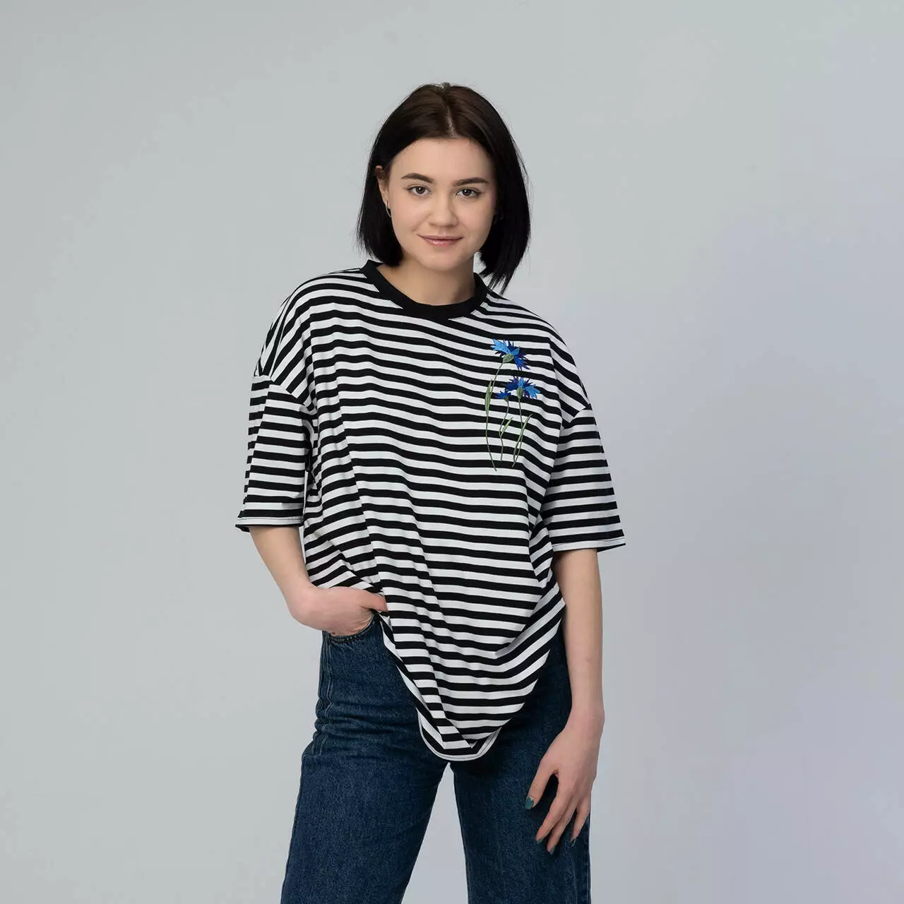Футболка жіноча оверсайз з вишивкою "Волошки"