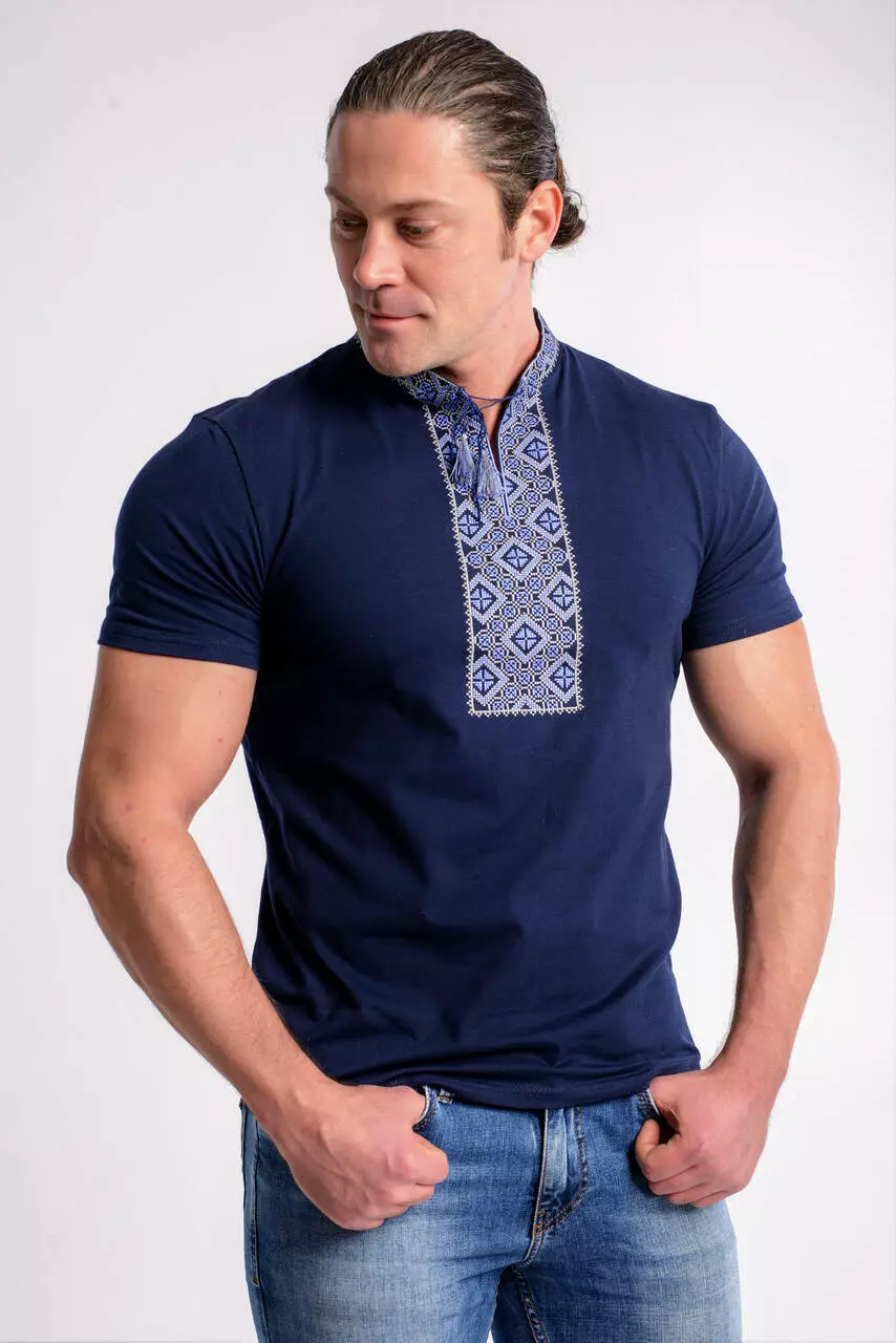 Класична чоловіча футболка із козацькою вишивкою – чудовий варіант для справжнього патріота.