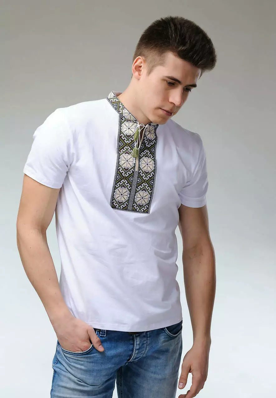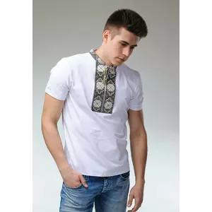 Модна чоловіча вишиванка на короткий рукав «Гуцульська (біла вишивка)»