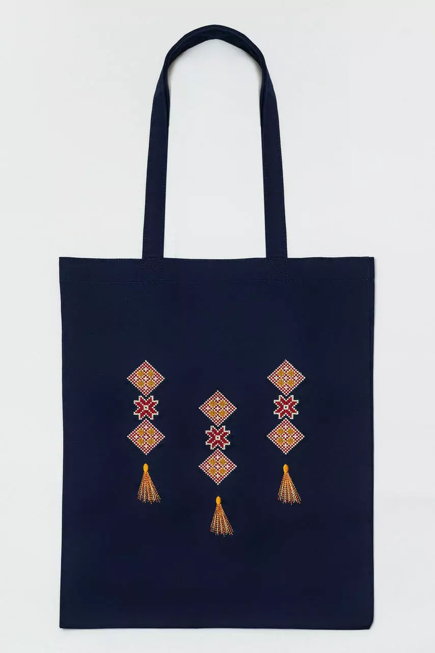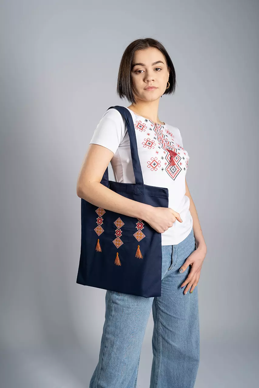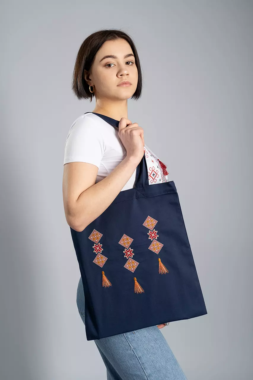 Модна еко-сумка для покупок "Китиці" у синьому кольорі