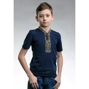 Оригінальна дитяча футболка в українському стилі темно-синього кольору з зеленою вишивкою з кутасиками "Козацька". Футболка літнього сезону виготовлена з натуральної бавовни, яка приємна на дотик та забезпечить прохолоду у спекотні дні. Така стильна та вішукана прикрасити стиль будь-якого хлопчика, яка знадобиться як і для шкільного свята так і у будні дні. А цікавий та стильний візерунок підкреслить впевненість у своїх силах вашого хлопчика. Зелена вишивка сімволізує юність, молодість,безтурботність, яка важлива для шкірного хлопчика. Поспішайте придбати для своїх найдорожчих хлопчиків цю стильну вишиту футболку у нашому інтернет-магазині "Меланіка"!