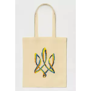 Повсякденна еко-сумка з вишивкою "Тризуб" у бежевому кольорі