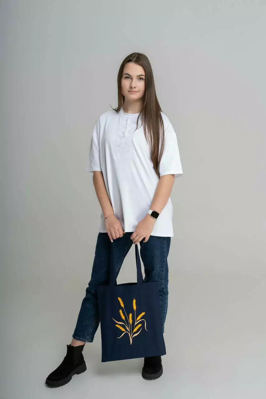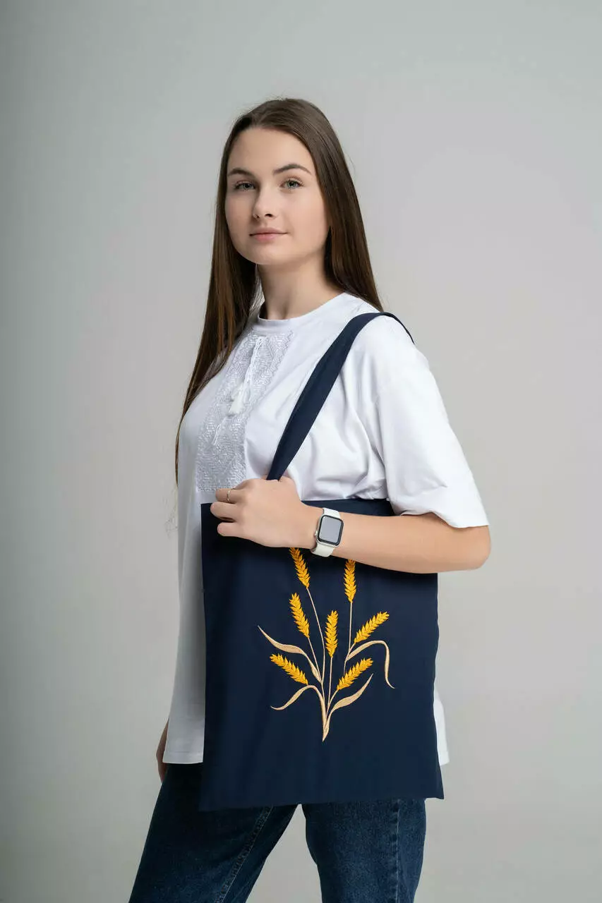 Еко-сумка для покупок "Колосок" у яскравому синьому кольорі - це те що потрібно для походів в магазин, якщо ви дбаєте про природу та свідомо ставитесь до екології.