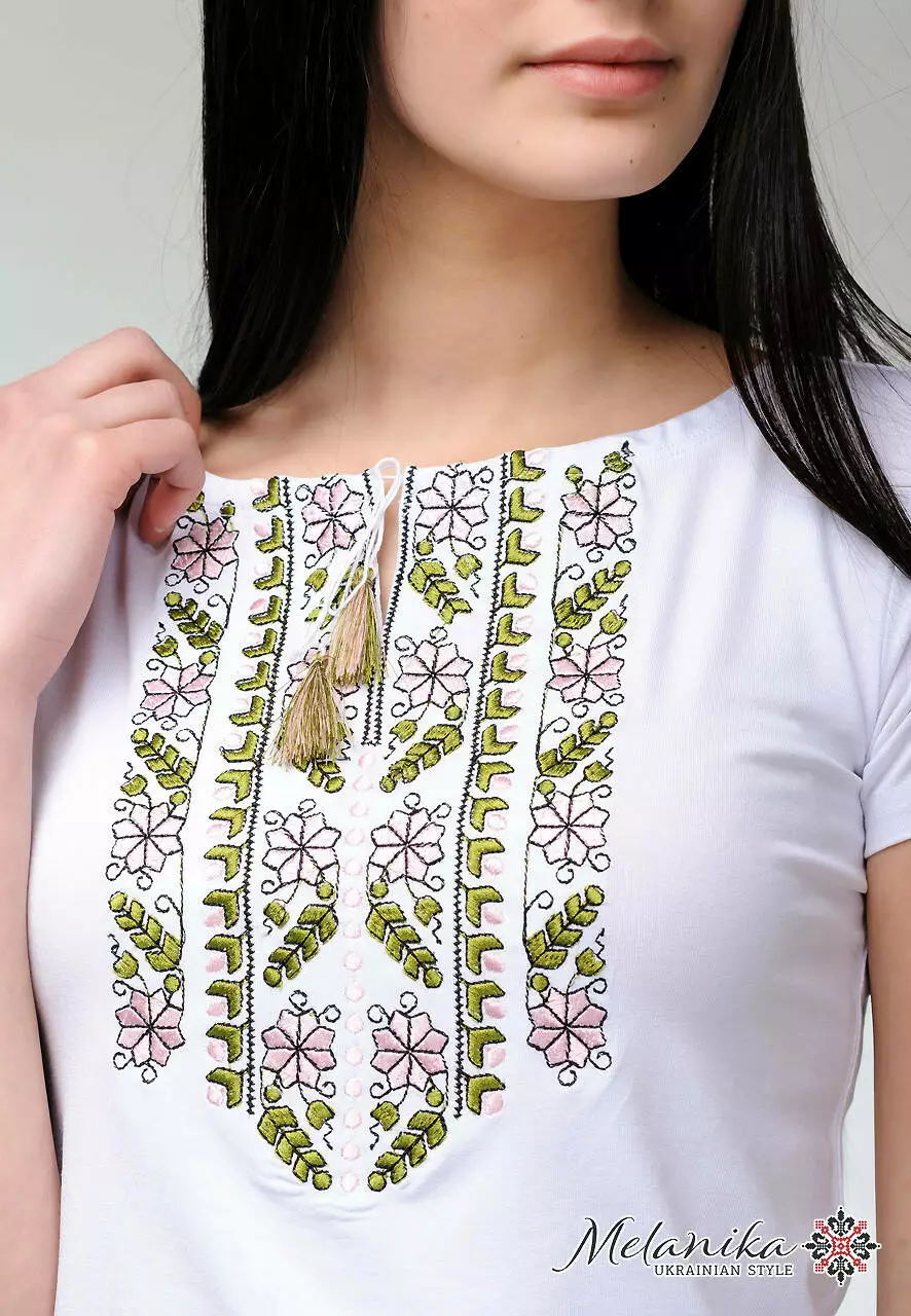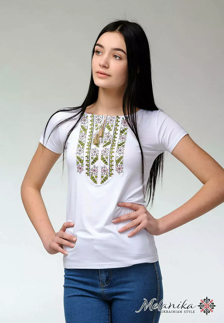 Ніжна та стильна жіноча вишита футболка на короткий рукав - тренд цього сезону. Для створення цієї вишиванки майстри використали білосніжну високоякісну тканину з віскози та еластану. Вона вигідно підкреслює переваги Вашого тіла та дуже приємна на дотик. Крім того, річ дуже легка, тому літня спека зовсім не страшна для Вас, коли Ви в цій вишиванці.