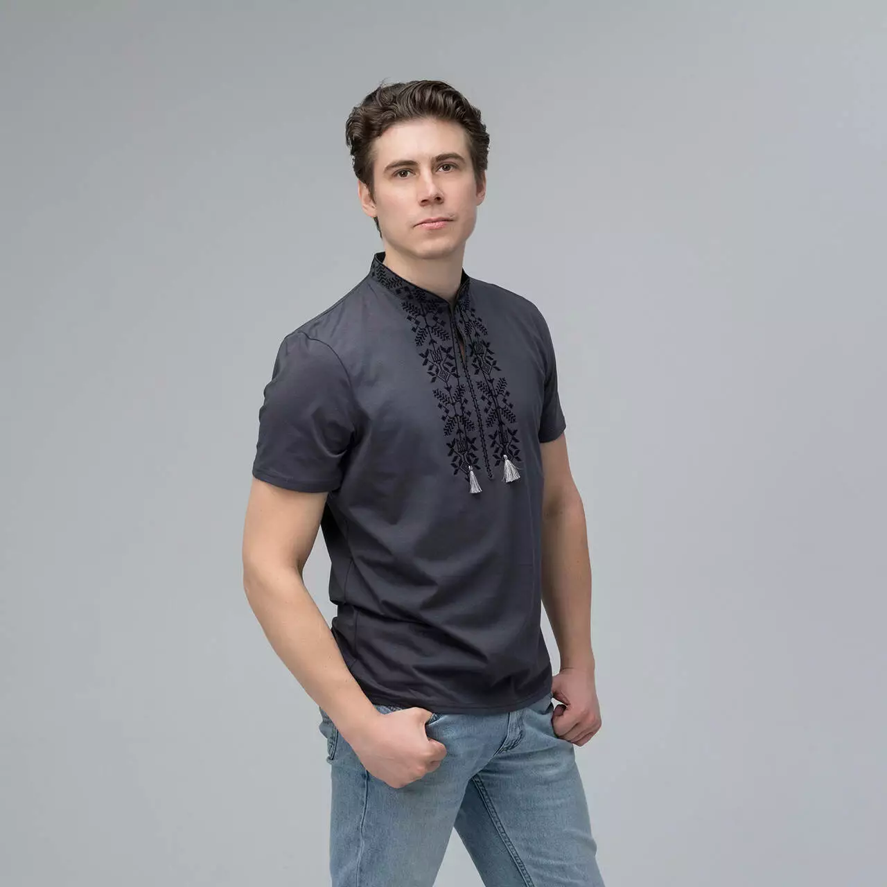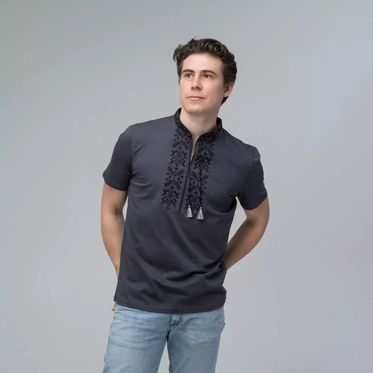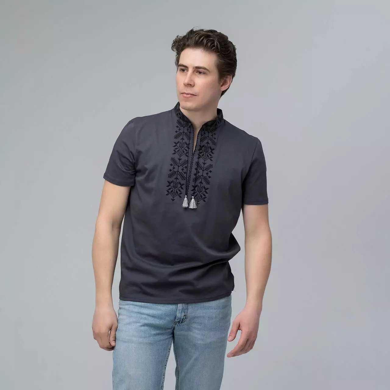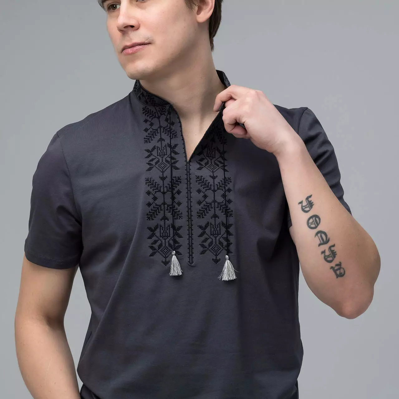 Вишита чоловіча футболка "Тризуб" - це нова модель від виробника «MELANIKA». Дана модель є ідеальною завдяки незвичному геометричному орнаменту, у якому є тризуб, чудовий сірий колір із графітовим відтінком та високоякісна тканина. Чоловіча вишита футболка із комірцем стійкою та класичними зав'язками це та річ якою можна доповонити ваш патріотичний образ влітку.
