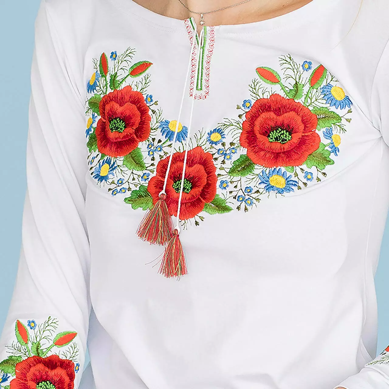 Вишиванка для дівчинки на довгий рукав "Маків цвіт" - це однозначно базова річ гардеробу кожної принцеси. Вишиту футболку для дівчинки прикрашає традиційна лаконічна вишивка з квітковим та рослинним орнаментом. Традиційно вишивка прикрашає груди та рукави вишиванки. Що стосується вишиванки то вона неймовірно практична, легка та універсальна по стилю, адже чудово впишеться із будь-яким одягом. Дана модель не мнеться, чудово переться, швидко висихає, та не створює проблем із прасуванням.