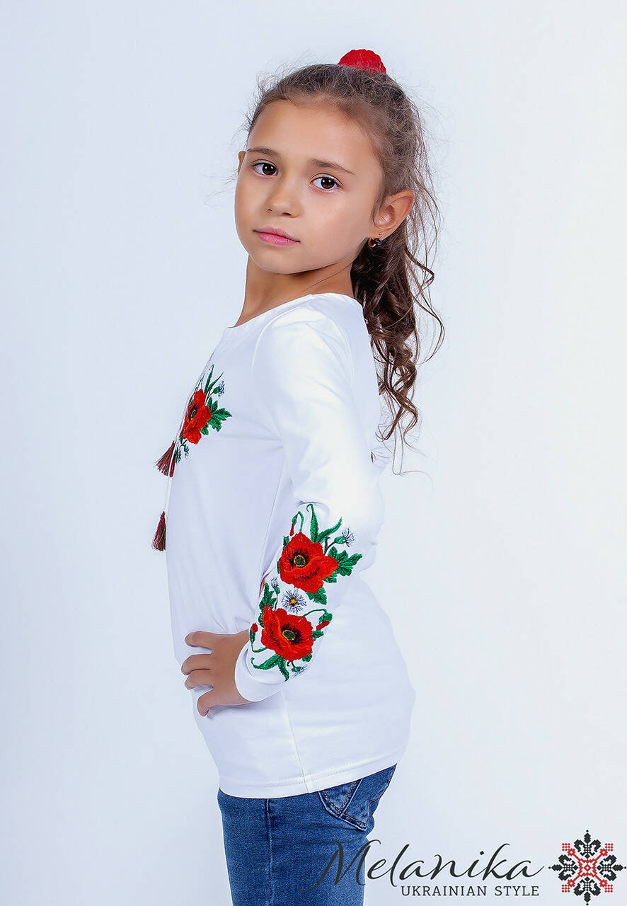 Вишита футболка на довгий рукав для дівчинки "Макове поле". Футболка білого кольору з кутасиками, виготовлена з натуральної бавовни, приємна та ніжна на дотик. Саме у спекотні дні освіжає від теплих промінчиків сонця. Маковій візерунок оберігає від зла та сімволізує доброту. Червоні маки символізують любов, сонце, радість та теплоту. Саме для дівчаток частіше всього прикрашають червоними нитками по білій тканині. Вишиваночка підкреслює патріотизм, стильність та витонченість. Вишита футболка збагатить образ кожної принцеси на будь-якомі святі. Закупитися вишиваночками для кожного з членів сім'ї варто у нашому інтернет-магазині "Меланіка"!