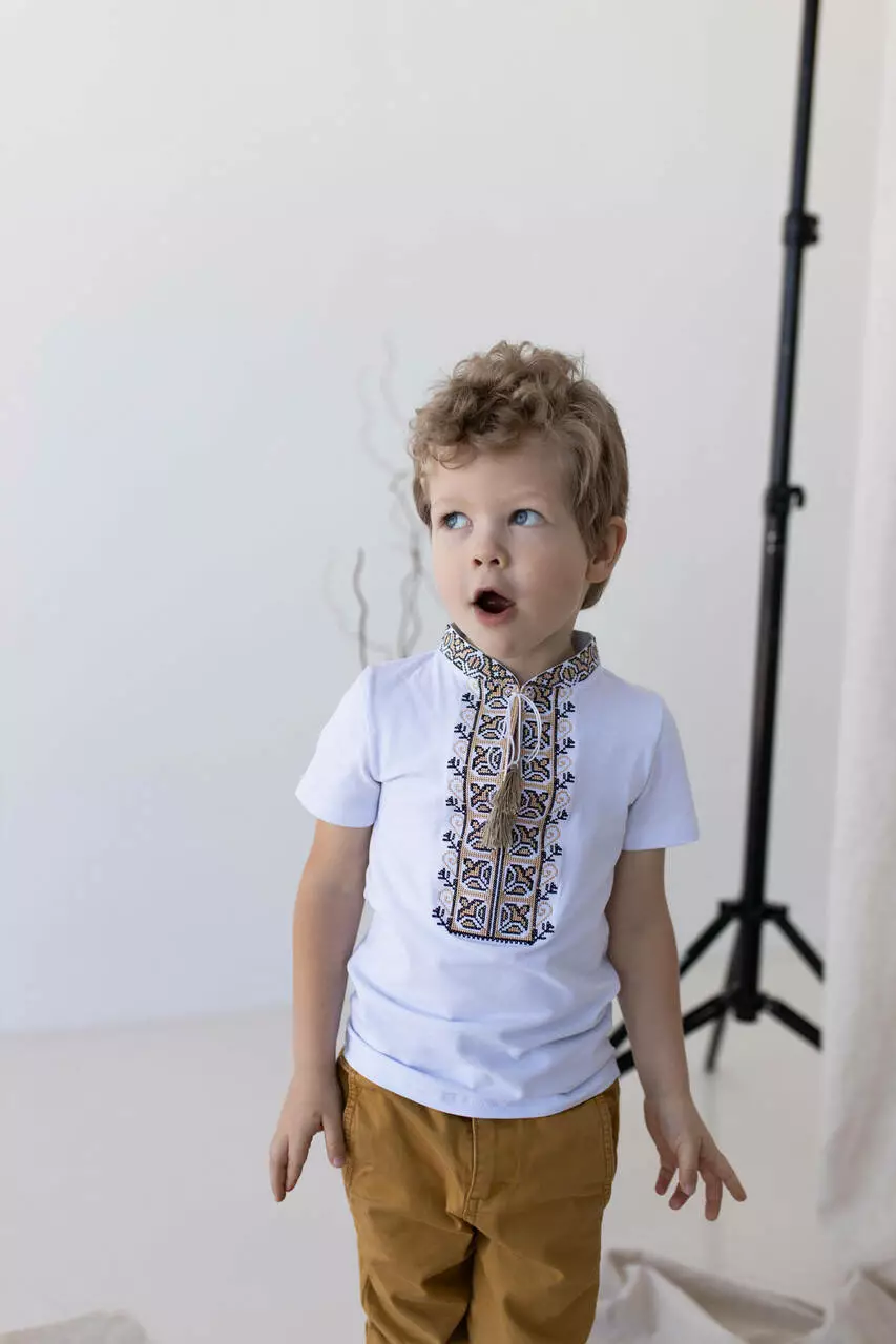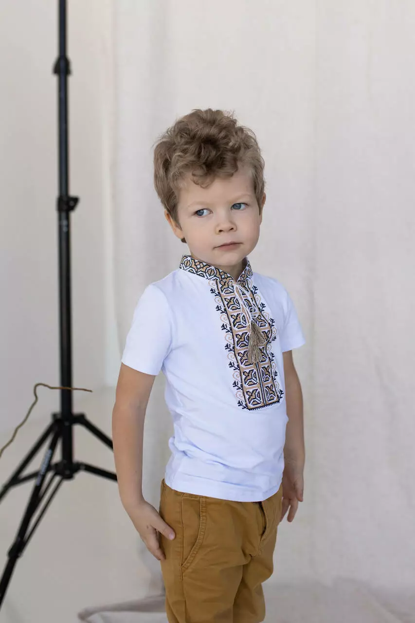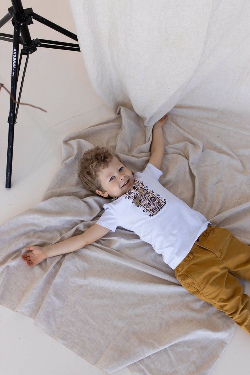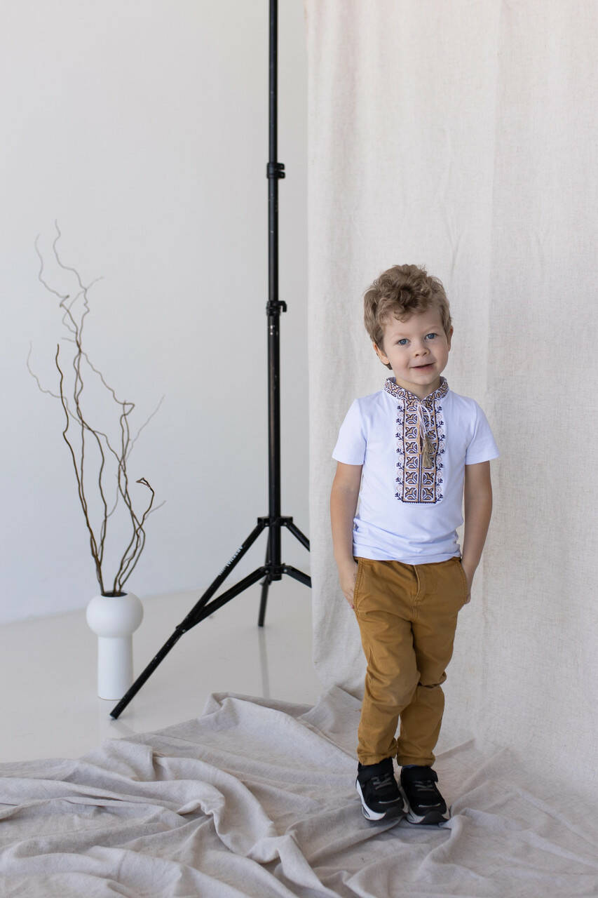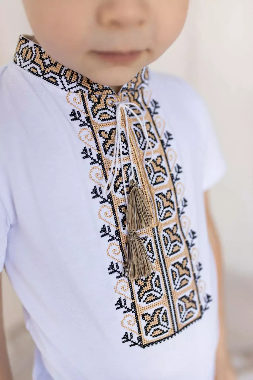 Вишита футболка для хлопчика з коротким рукавом Дем'ян янчик (бежева вишивка) 92