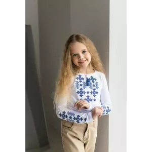 Вишита футболка на довгий рукав для дівчинки із геометричним орнаментом «Зоряне сяйво (синя)»