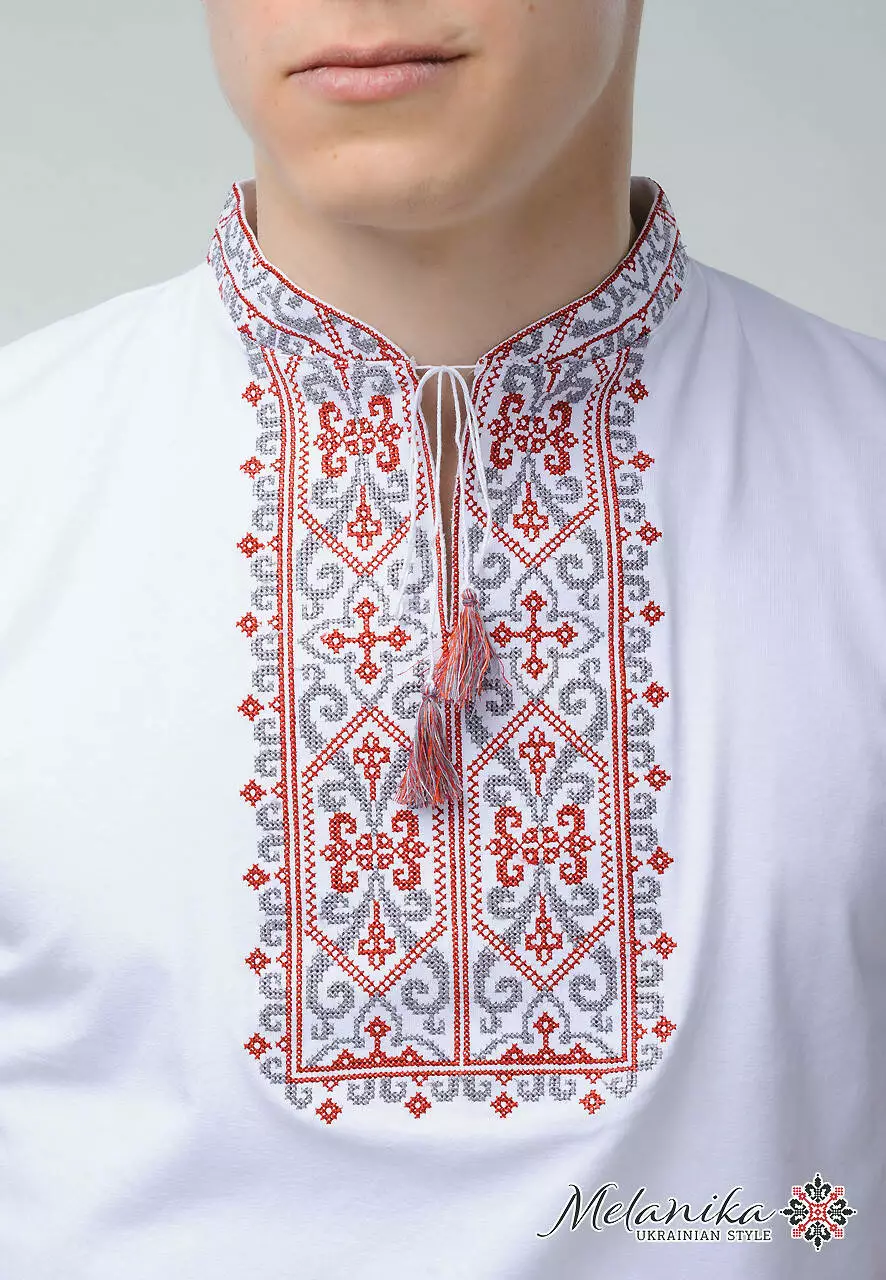 Вишита футболка на короткий рукав білого кольору «Король Данило (вишнева вишивка)»