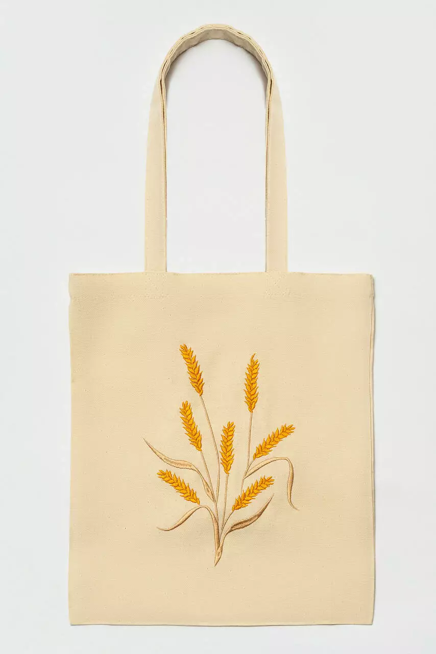 Вишитий екошопер з квітковим орнаментом "Колосок" бежева