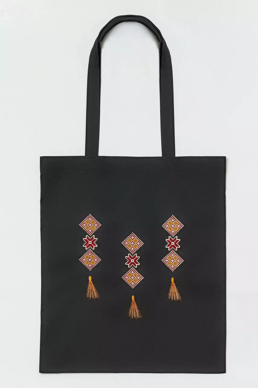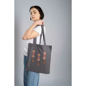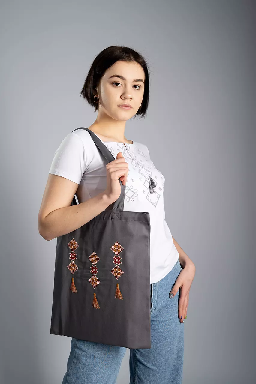 Вишитий шопер для покупок в етно стилі "Китиці" у графітовому кольорі це не тільки стильно, модно та сучасно це крок для збереження природи та екології.