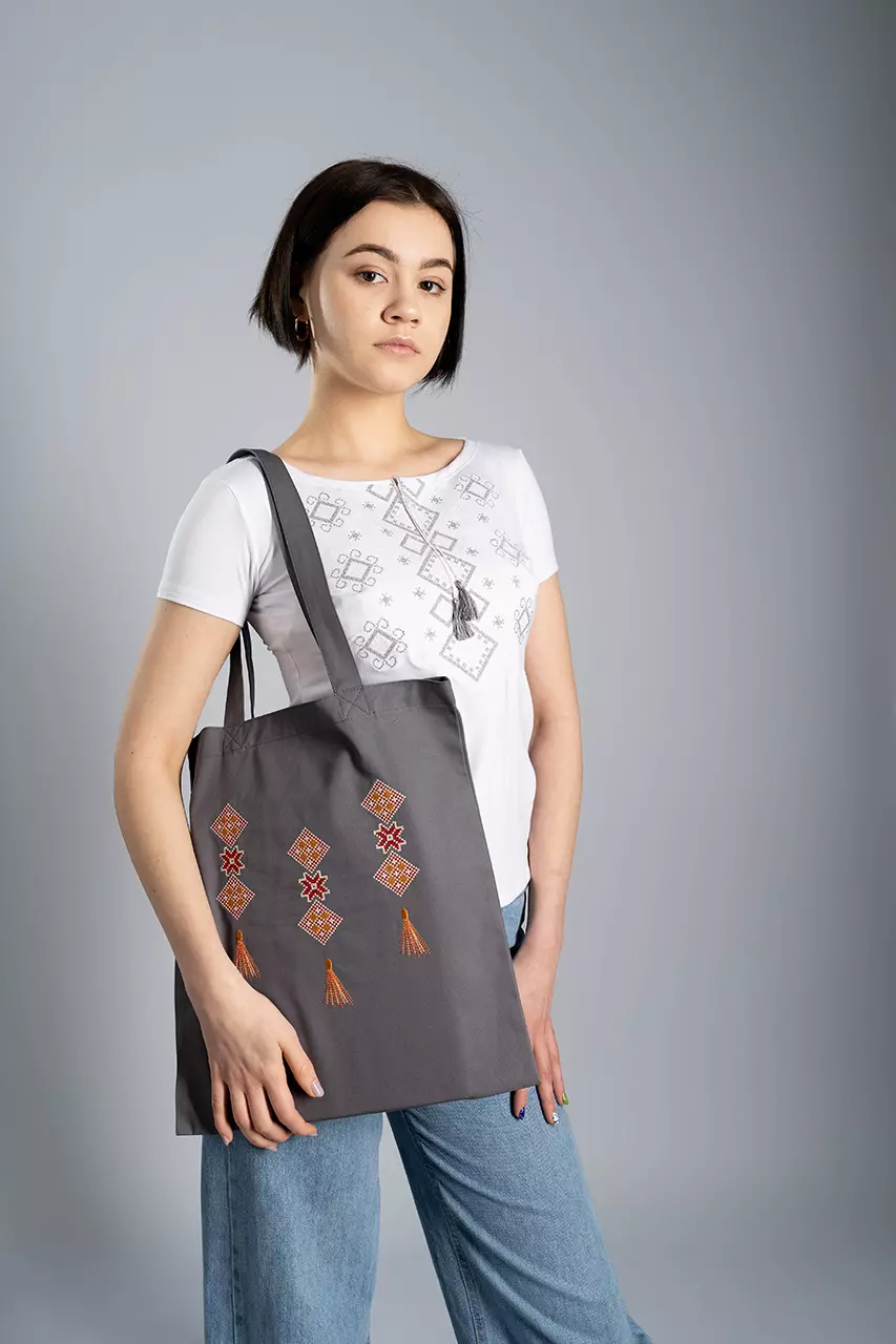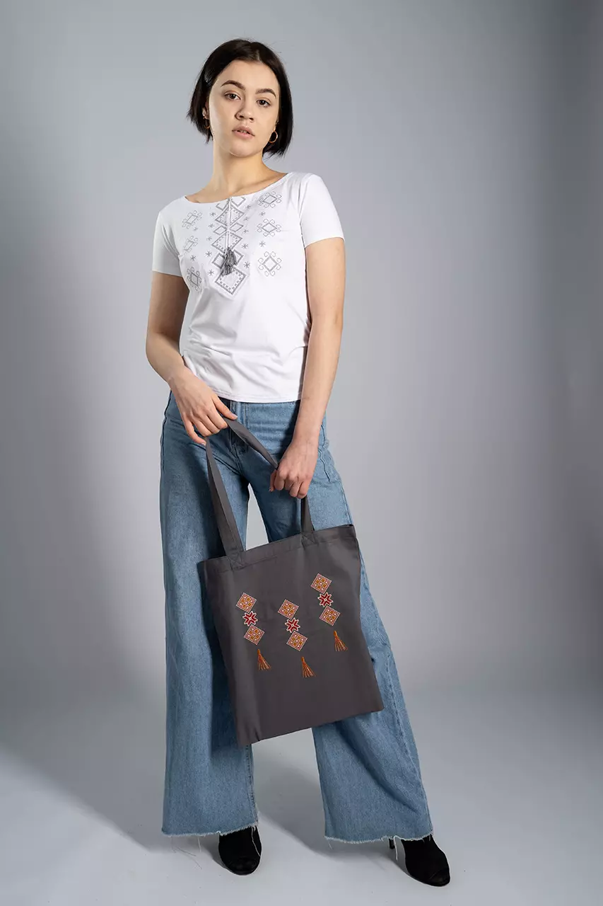 Вишитий шопер для покупок в етно стилі "Китиці" графіт