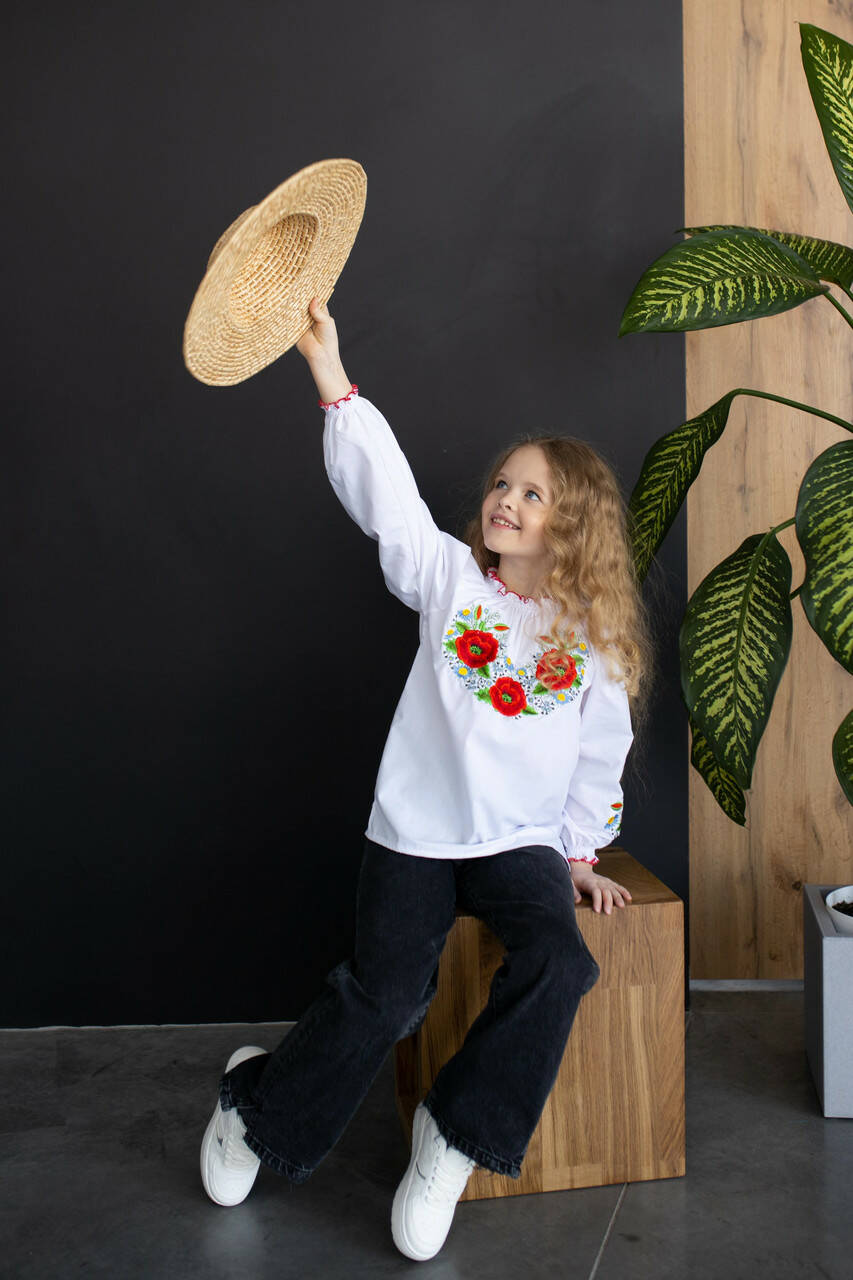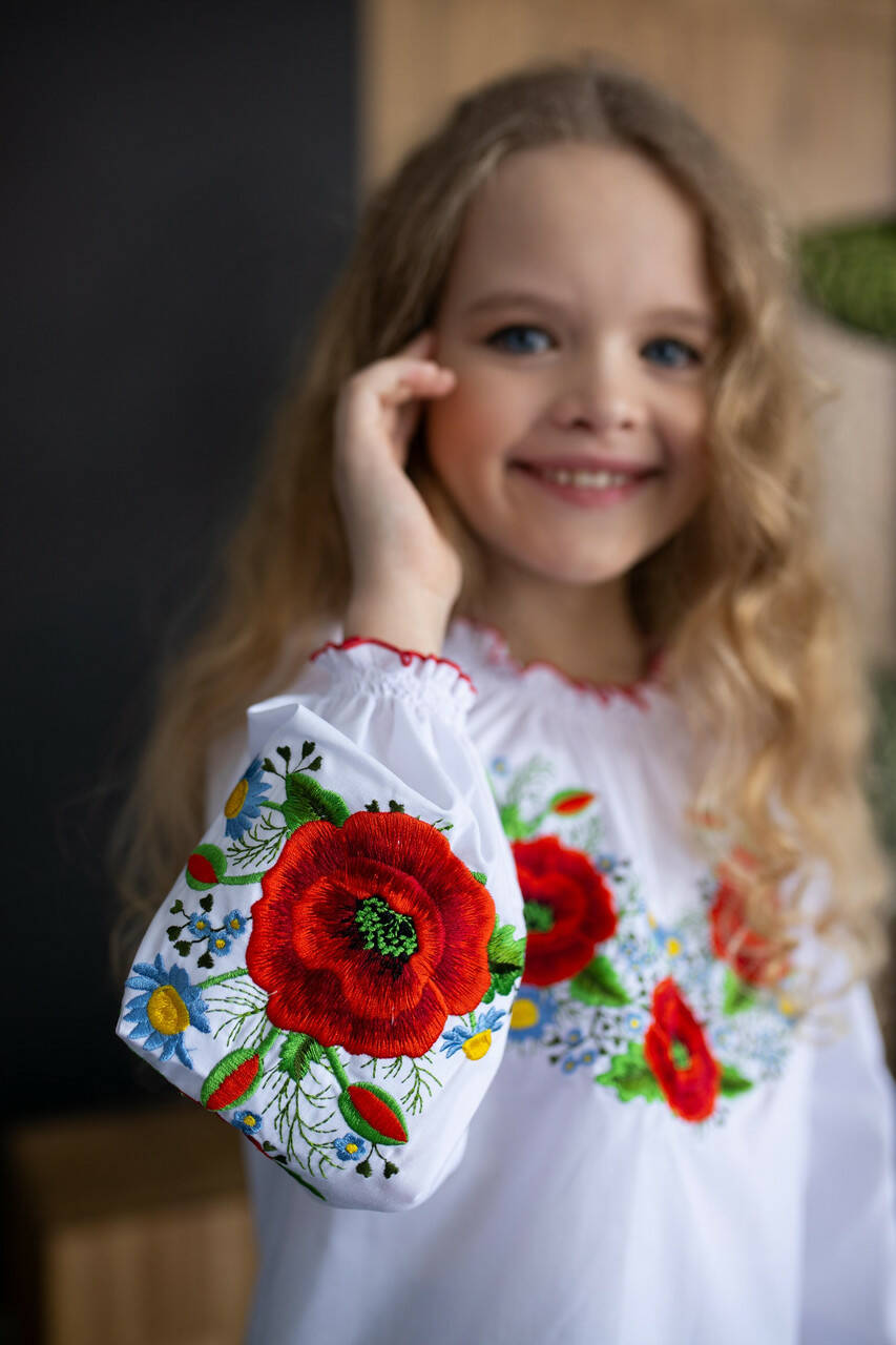 Вишиванка для дівчинки з пишними рукавами «Маків Цвіт» 122/128