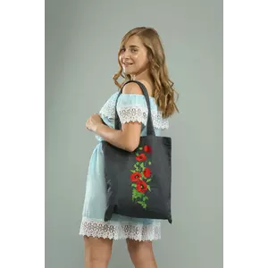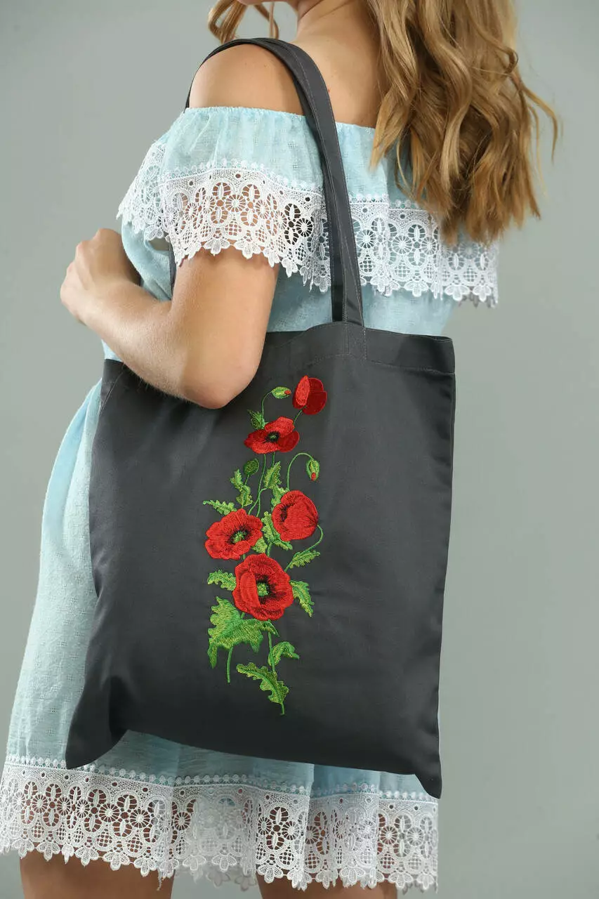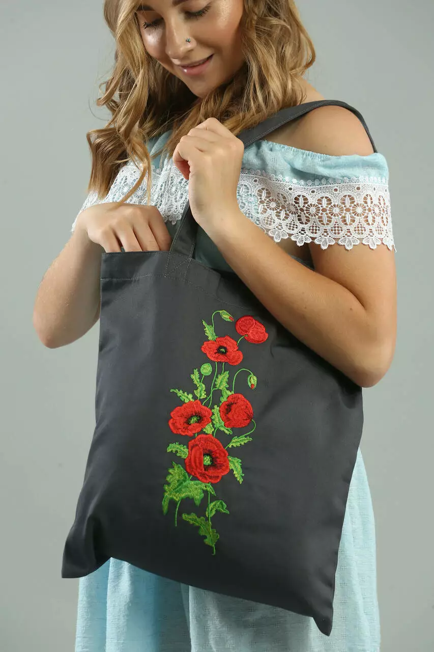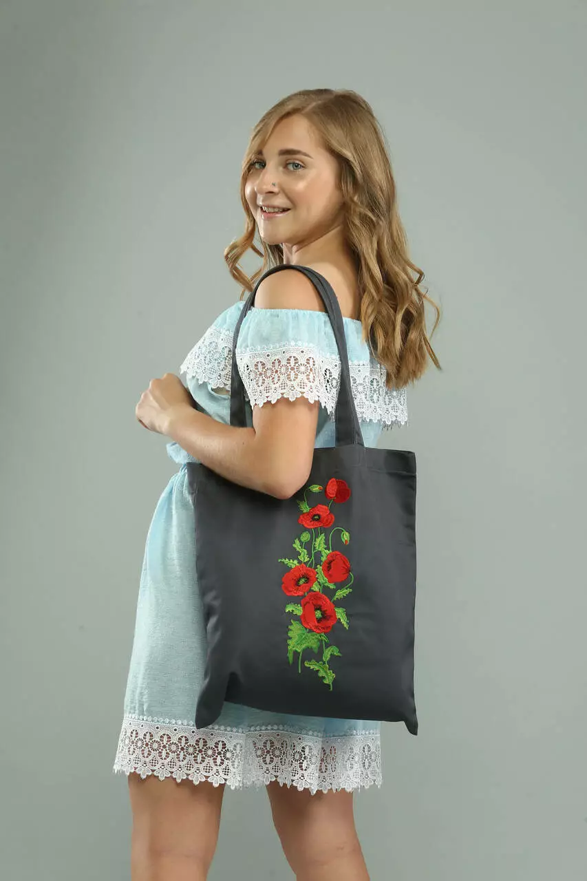Жіноча еко сумка-шопер "Маки" у графітовому кольорі