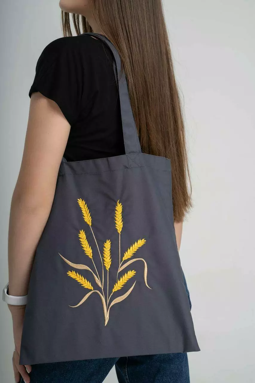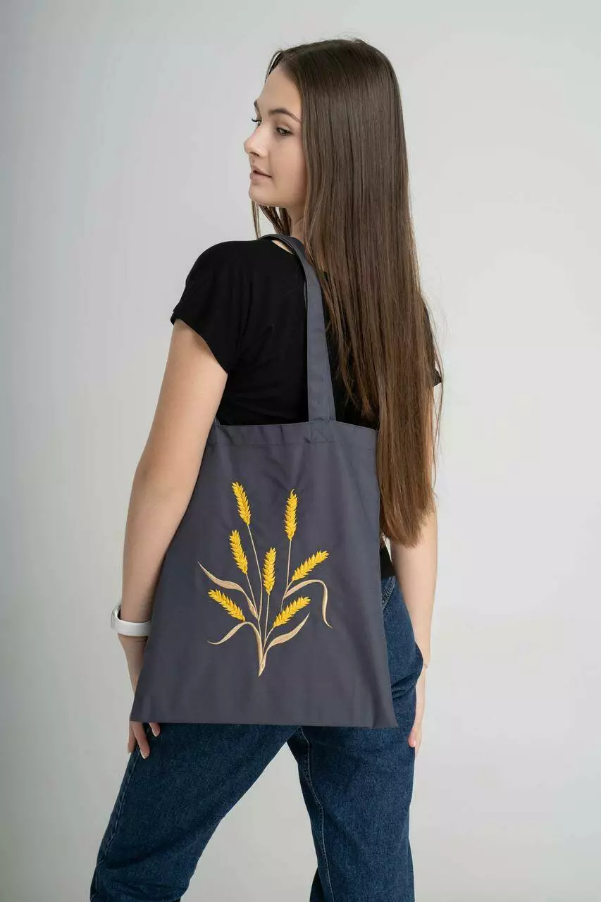 Жіноча еко-торба з вишивкою "Колосок" у графітовому кольору це те, що потрібно вашому гардеробу для щоденних походів у магазин.