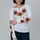 Жіноча вишита футболка на довгий рукав, це не просто вишиванка це вибух квіткового орнаменту на білій тканині. Модель із круглою горловиною та акуратними завязками, які доповнюють модель. На грудях розміщені три великих маки з іншими квітами та зеленю. На кожному із рукавів по два великих маки, які розміщенні в зоні передпліччя.