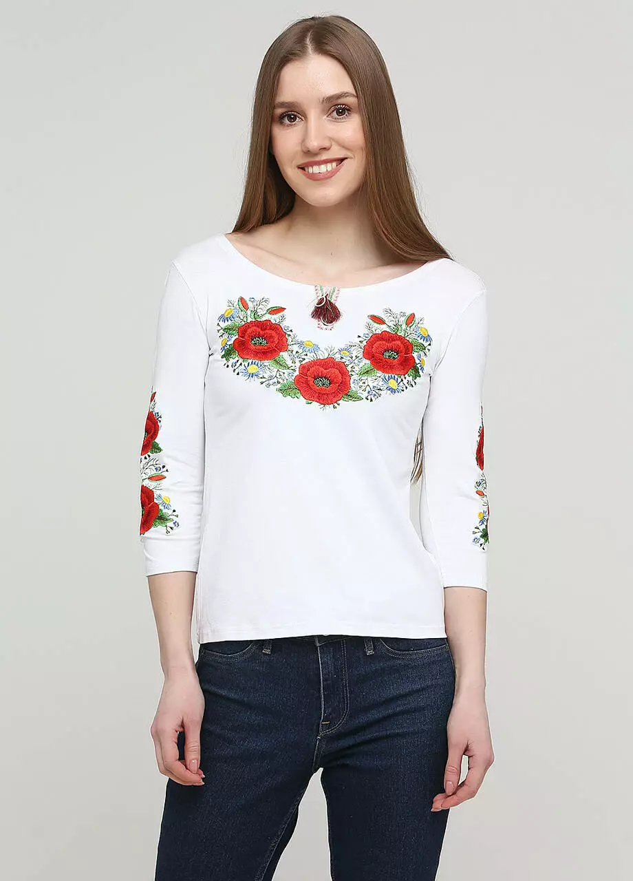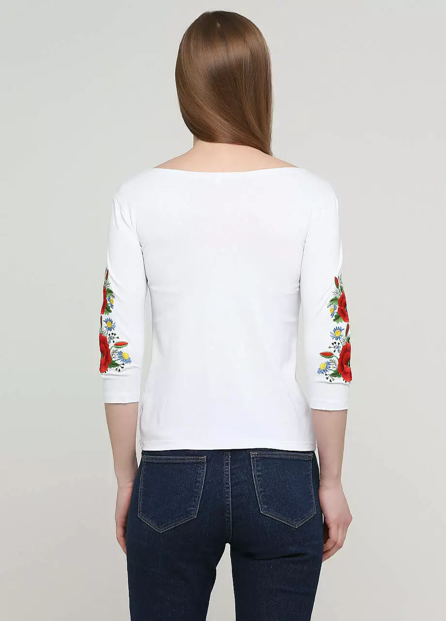 Жіноча вишита футболка з рукавом 3/4 «Маків Цвіт»